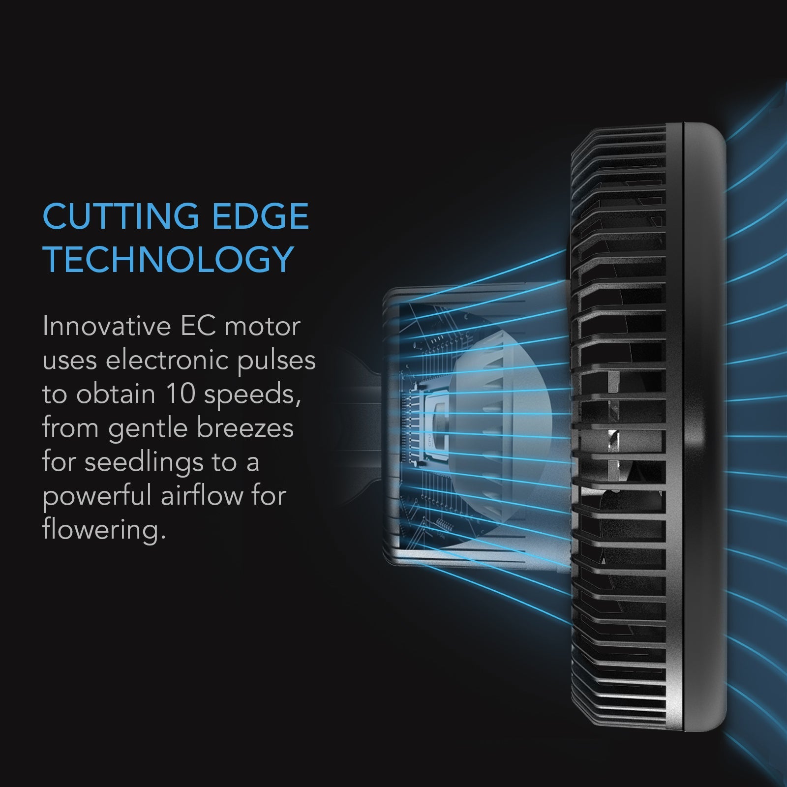 Features a cutting-edge Electronically Commutated (EC) motor, controlled digitally using precise electronic pulses. This PWM technology enables the fan to access the full range of its speed 0 to 100%. Set the optimal circulation for any plant growth stage, from ultra-gentle breezes for germination and seedlings, to a powerful airflow for vegetative and flowering. Includes a corded adapter that can be used to connect to AC Infinity smart controllers to access climate triggers, grow cycles, scheduling, and more. Controllers are sold separately.