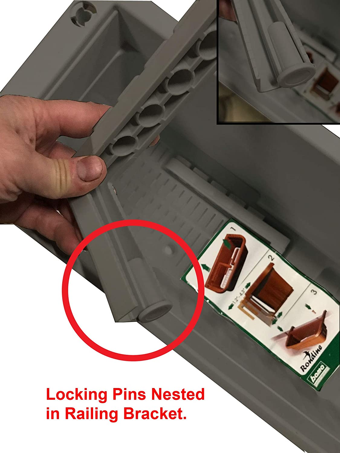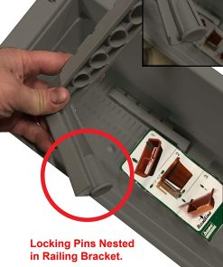 - IMPORTANT: You will find locking pins nested in railing brackets.
