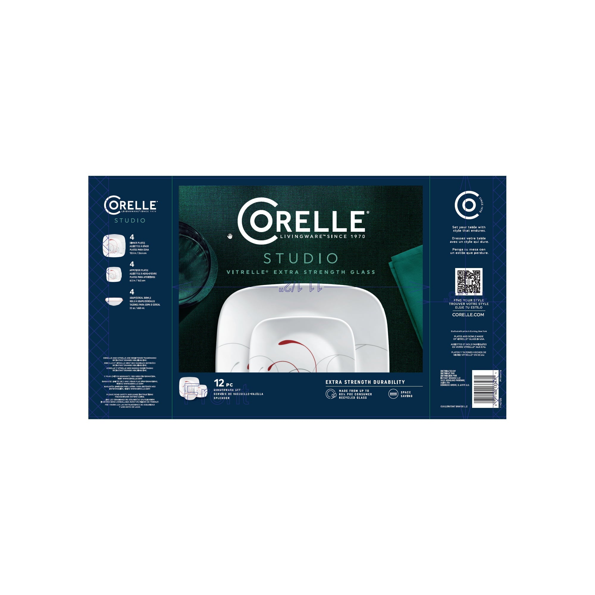 - VITRELLE EXCLUSIVE: Using up to 80% recycled, pure glass, Corelle’s triple layer glass technology provides extra strength durability