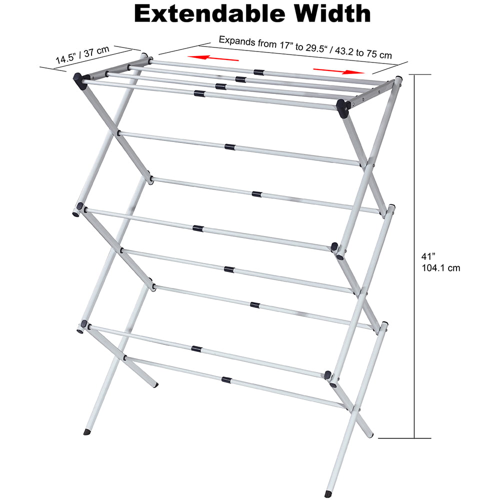 KEEP CLOTHES DRY THE NATURAL WAY: With a large drying surface, hang dry clothes over the horizontal spanning rods Perfect for the delicate garments that can’t be tossed in the dryer