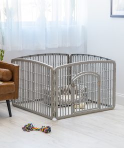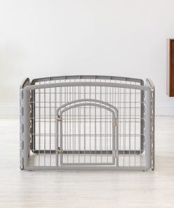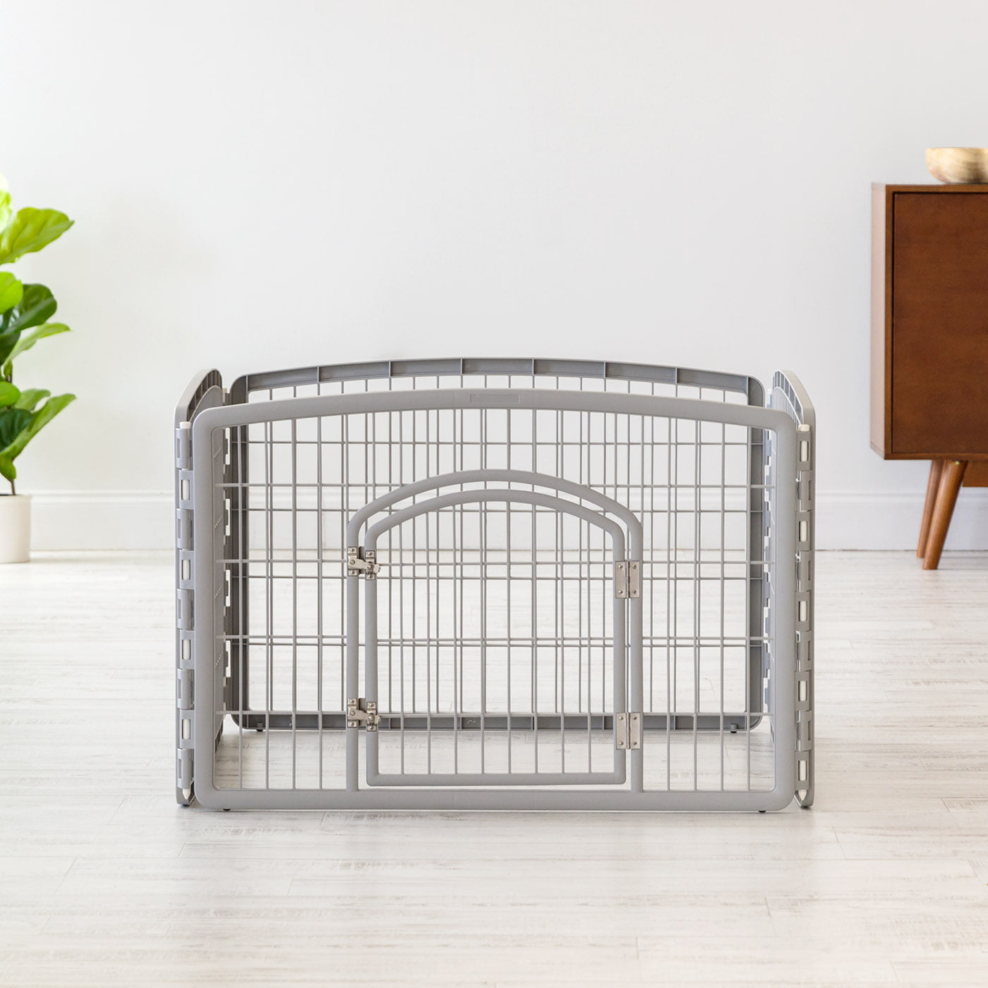 IRIS USA, 24” 4 Panel Plastic Exercise Pet Playpen with Door, Gray