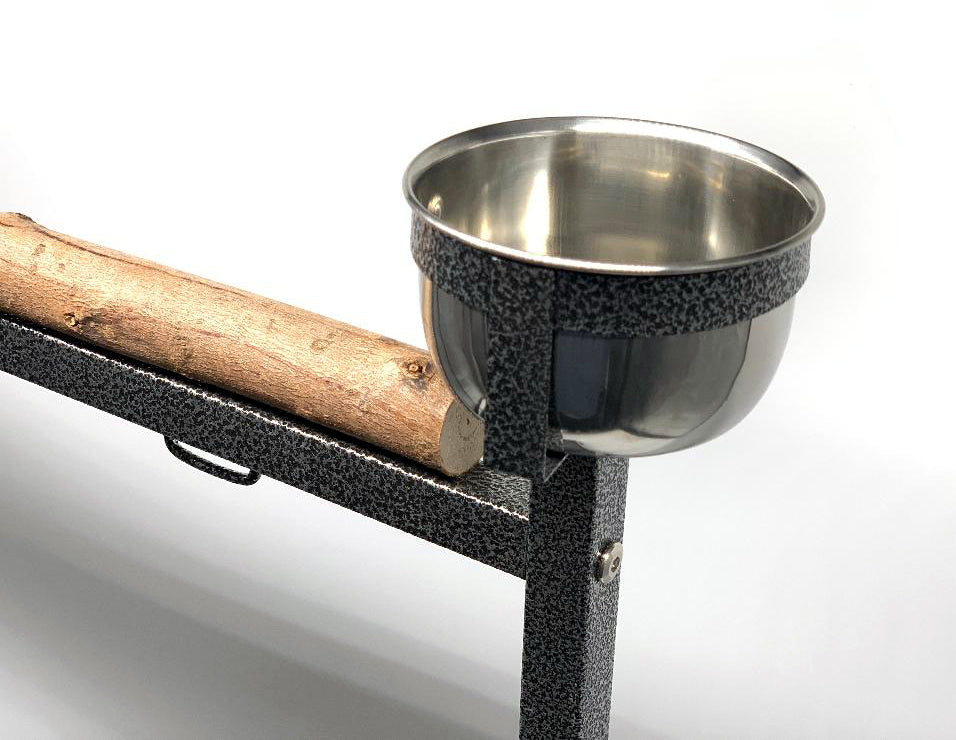 Large Wrought Iron Parrot Bird Play Stand Natural Wood Perch Stainless Steel Bowls Play Gym Play Ground Rolling Stand