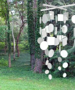 Mirroring our Asli Capiz Chime design, this sparkling wind chime is a wonderful accent for a quiet corner. Light reflects off dozens of small mirrors, bringing with it warmth, life and energy.Strategically placed in your garden, this garland will twinkle and glow. It makes an effective scarecrow, keeping the birds away from your vegetables and flowers.