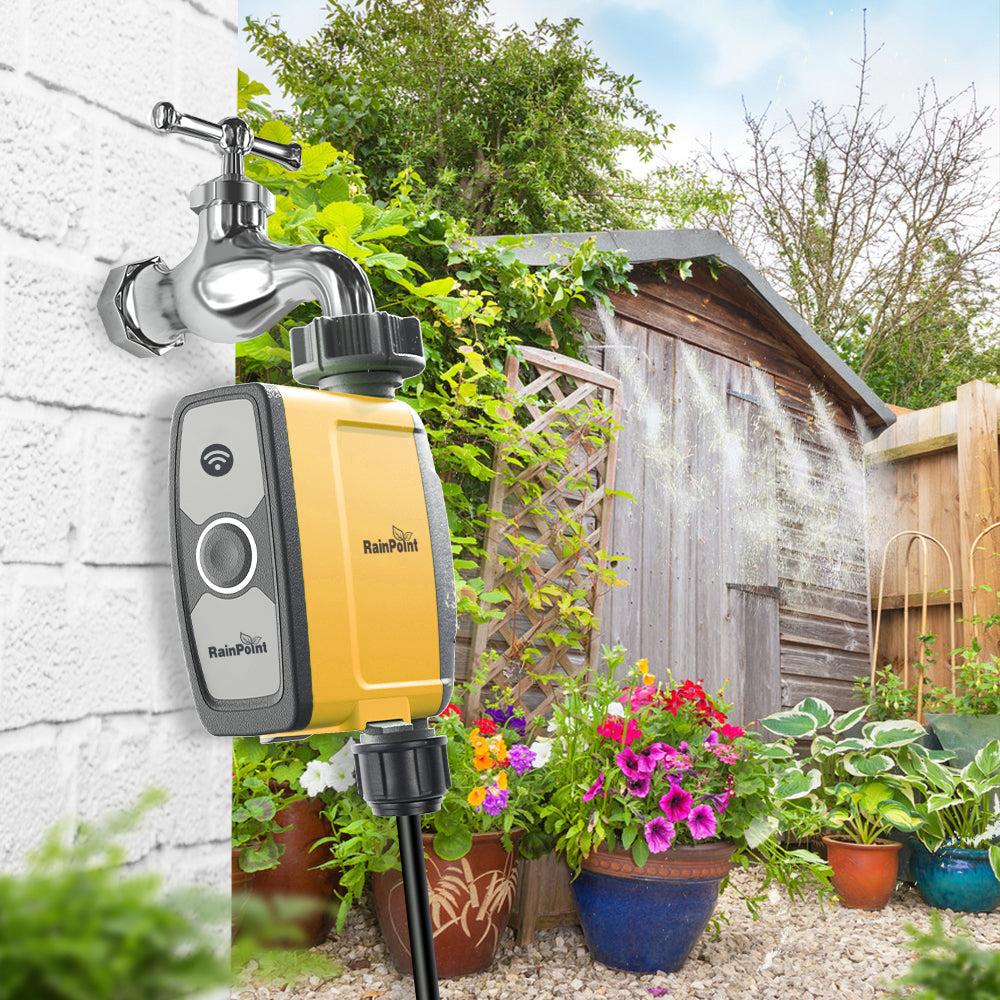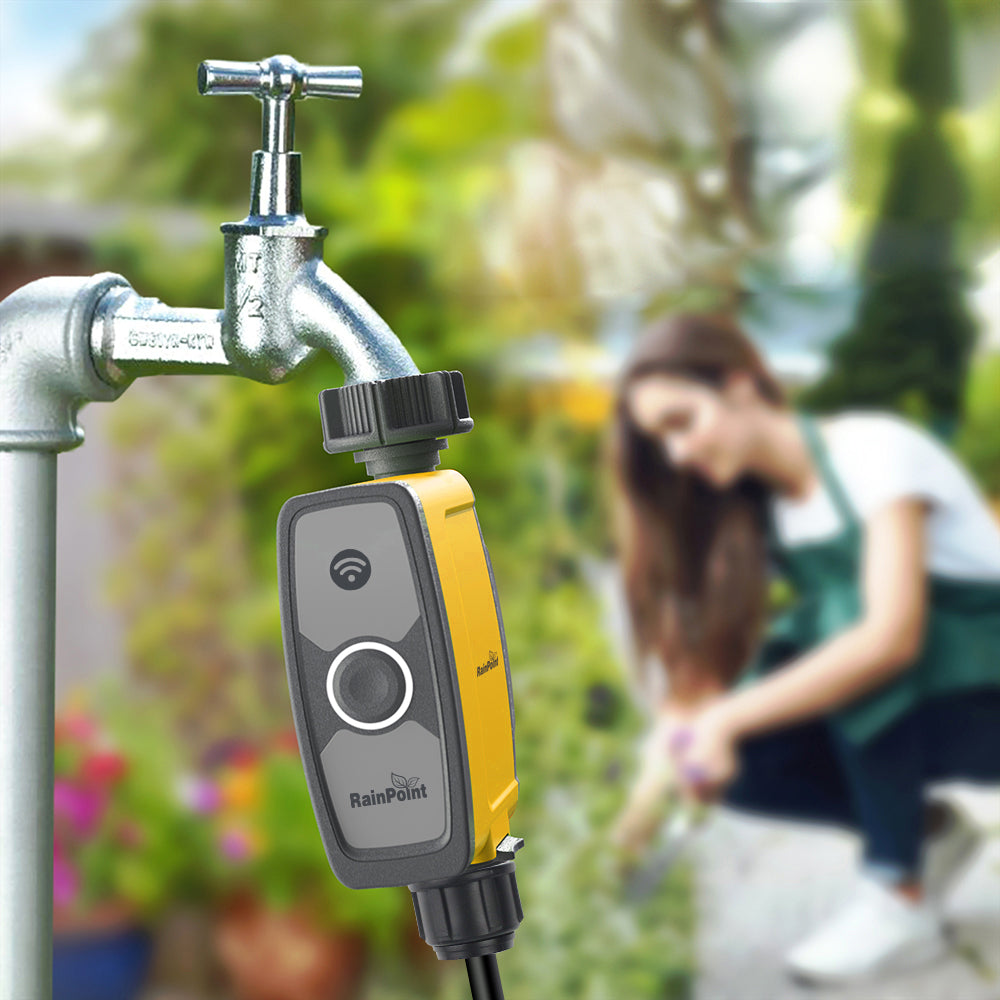 - Smart Irrigation System >> One RainPoint WiFi Hub can be paired with 4 RainPoint WiFi Water Timers and 1 WiFi Soil Sensor. Add additional WiFi hose timers to create multiple watering zones in your yard (Sold Separately).