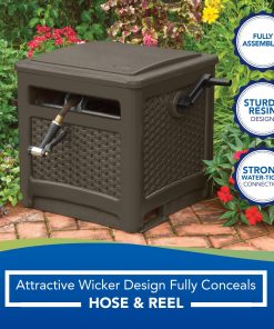 Never leave your garden house lying around with Suncast’s Smart Trak Hose Guide and Hideaway! This hideaway features the Smart Trak hose guide that helps manually wind the hose evenly around the reel. It’ll remove any kinks or knots that can be created when gathering your hose without the reel. It features an attractive wicker design with a java brown finish that will go perfectly with any yard decor. The durable plastic resin construction is weather-resistant to provide years of quality use. This hideaway comes fully assembled for your convenience. The lightweight design of the hose guide makes moving your garden hose across your yard simple. Watering your plants or washing your car will never be easier or neater with this hose guide!