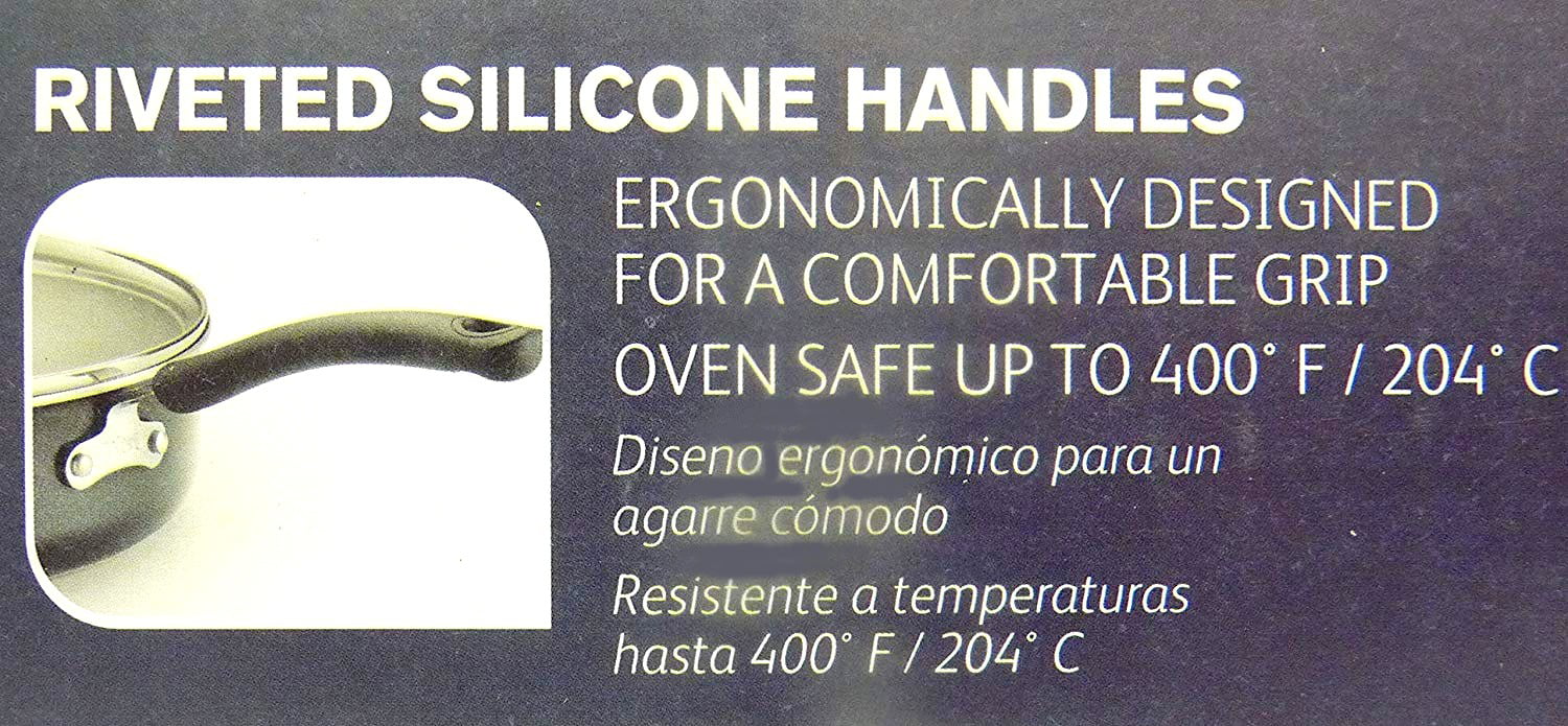 Features:Hard Titanium reinforced nonstick interior Thermo-Spot heat indicator shows when the pan is perfectly pre-heated and ready to begin cooking Metal utensil safe nonstick.Riveted silicone handles for safety and comfort.Oven safe to 400-DegreeF, lid to 350-DegreeF -Dishwasher safe
