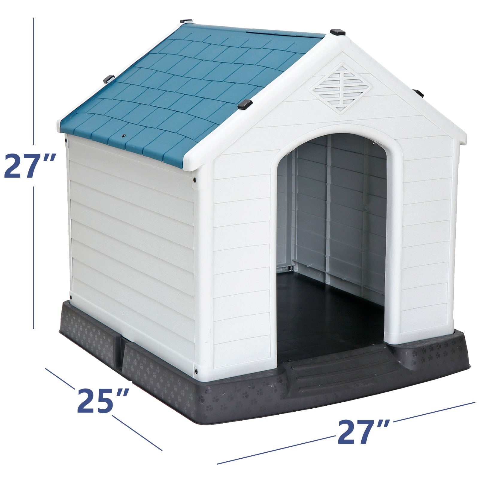 ZENY Plastic Indoor Outdoor Dog House Medium Pet Doghouse White, Blue Roof